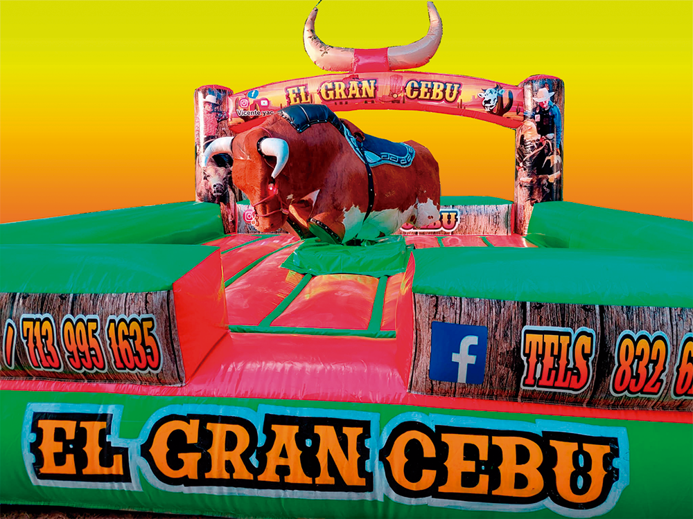 El toro mecánico es el centro de atención en cualquier fiesta o evento. Es ideal para todas las edades, se puede controlar para movimientos lentos para niños más pequeños o también puede girar muy rápido para adolescentes y adultos.
